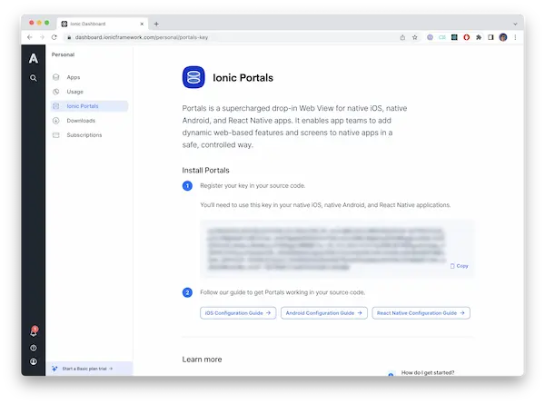 To use Ionic Portals, you need to have a product key. If you don't have a product key please contact sales to run a pilot.